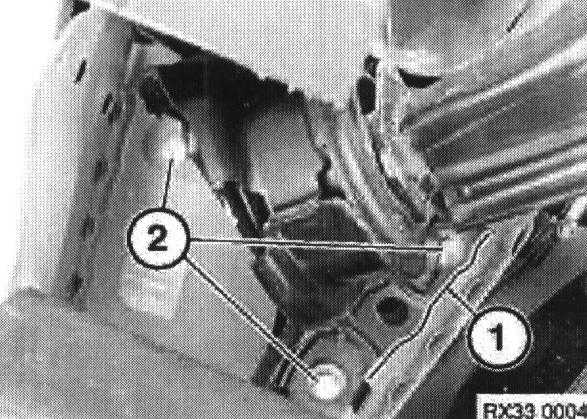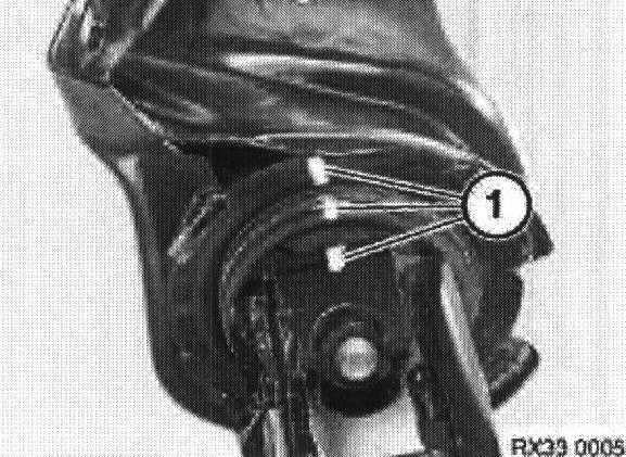 Mark position of compliance bush housing to body. Release 3 bolts holding compliance bush housing to body.