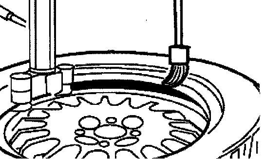 Operate mounting machine forward (clockwise) little by little; while doing so, make sure the lower tire bead remains in the rim well.