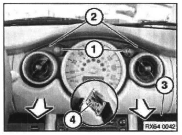 Remove screws on upper side of instrument cluster (2).