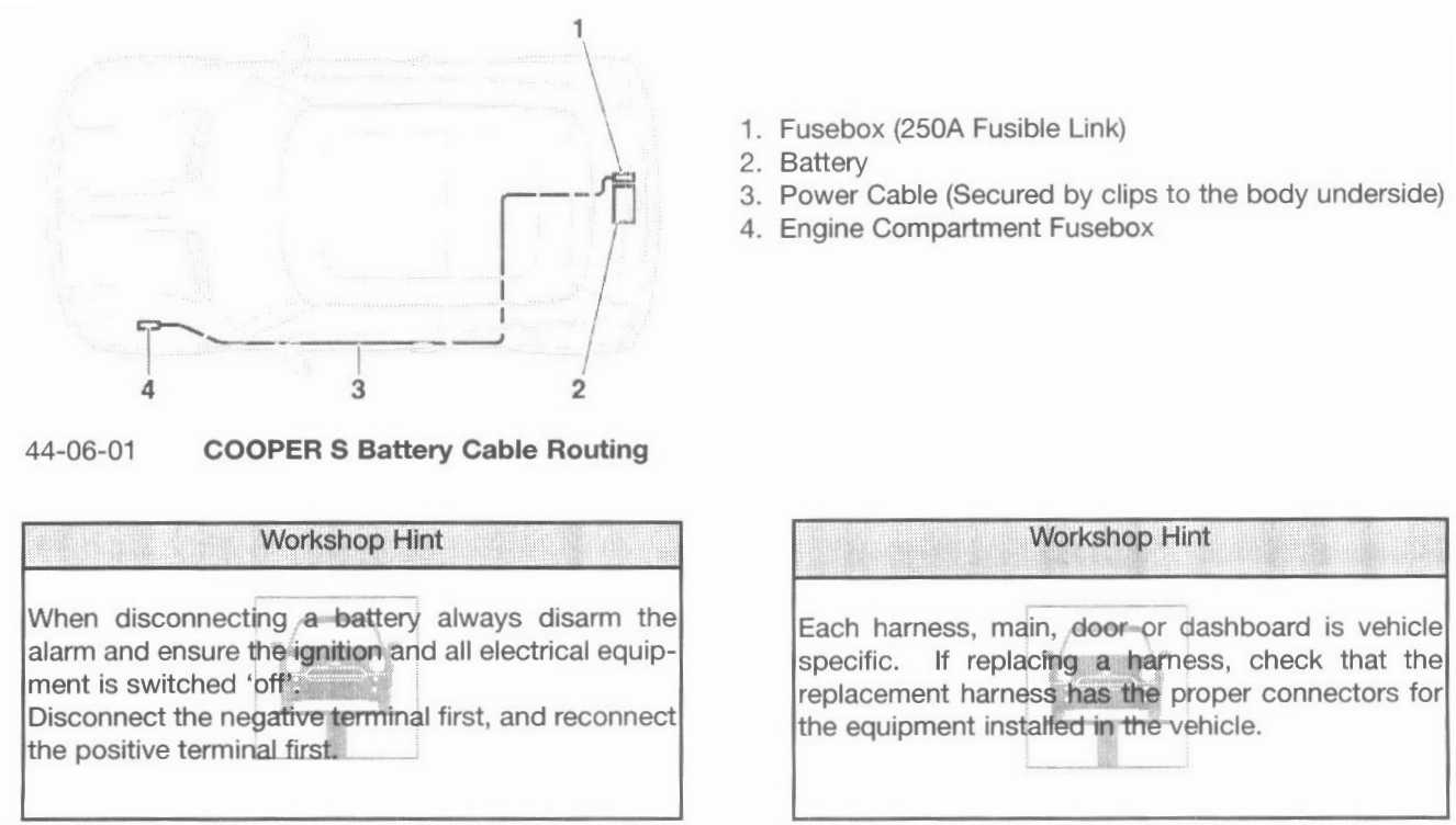 COOPER S battery is fitted with a BST (Battery Safety Terminal) for the main power cable.