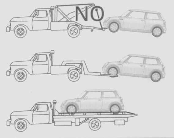 Caution! Only tow vehicles with automatic transmission with the front wheels raised or on a special transport vehicle, otherwise the transmission can be damaged.