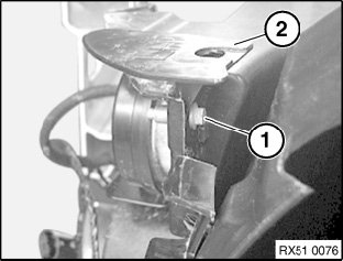 Unscrew bolt (1) and remove straightening attachment (2) from front end module.