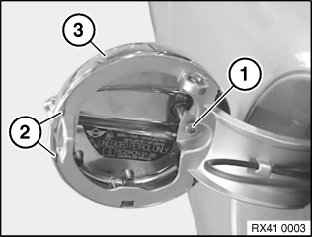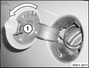 Release filler flap from cover plate. To do so, turn filler flap clockwise to release retaining lugs (1).
