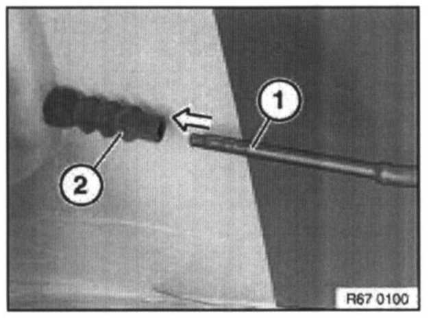 Insert servodrive (1) into fuel filler flap sleeve gaiter (2).