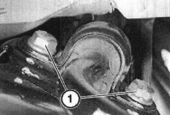 Remove bolts (1) securing anti-roll bar to subframe.