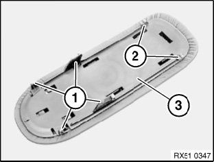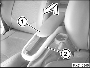 Slide cover (1) towards rear and snap at rear in direction of arrow out of centre armrest (2).