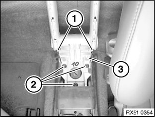 Release screws (2) and lift out centre armrest (3).