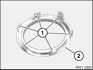 Installation: Catches (1) on trim ring (2) must not be damaged.