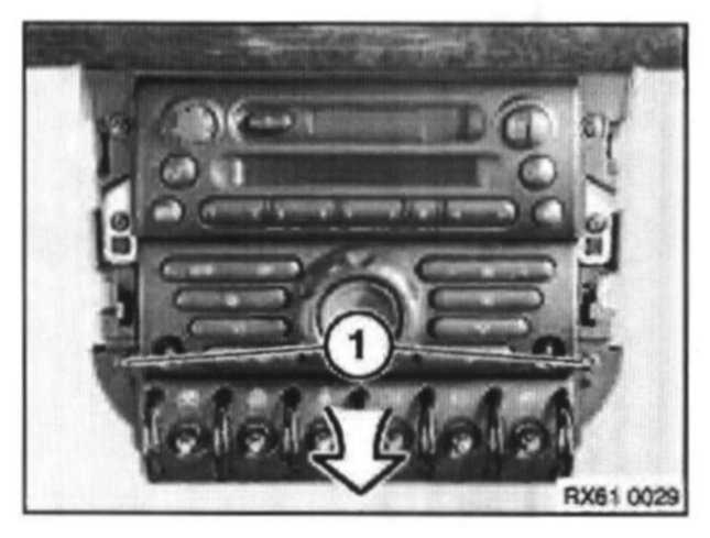 Remove screws (1) and pull module forwards to release rear securing clips.