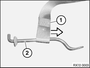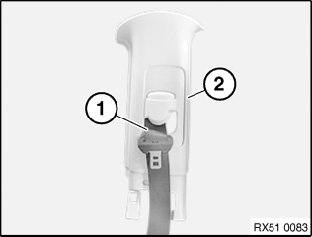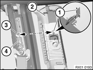 When installing, insert adjusting lever (1) correctly into mounting (3) of belt height adjuster (4).