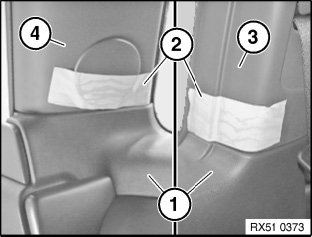Tape off trim panels for B-pillar (3) and C-pillar (4) with adhesive tape (2) as illustrated.