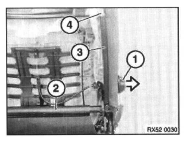Remove lumbar support wheel (1) by pulling in direction shown.
