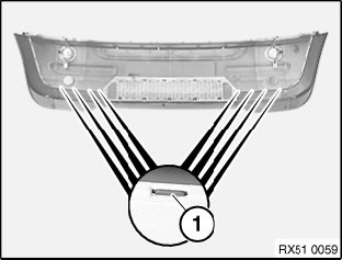 Detach retaining clips (1) for lower spoiler of front bumper from front bumper.