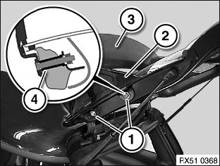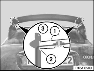 - If rear spoiler is not correctly seated in opening and seal (2), this may result in deformation and breakage of rear spoiler (1) or side section (3).