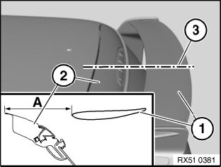 Align rear spoiler (1) to rear lid (2) in accordance with dimension (A).