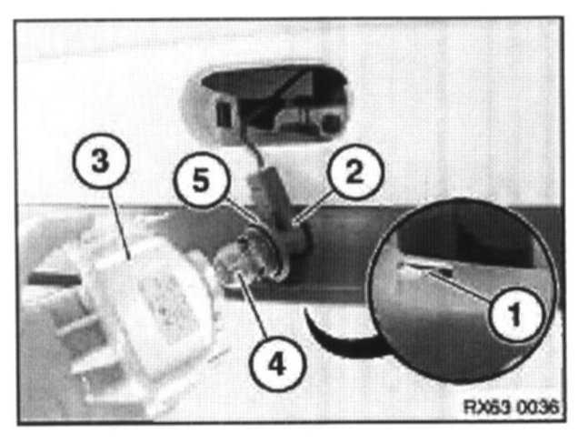 Release reverse light bulb holder (2) anti-clockwise and remove light (3).