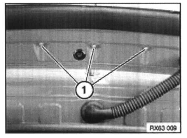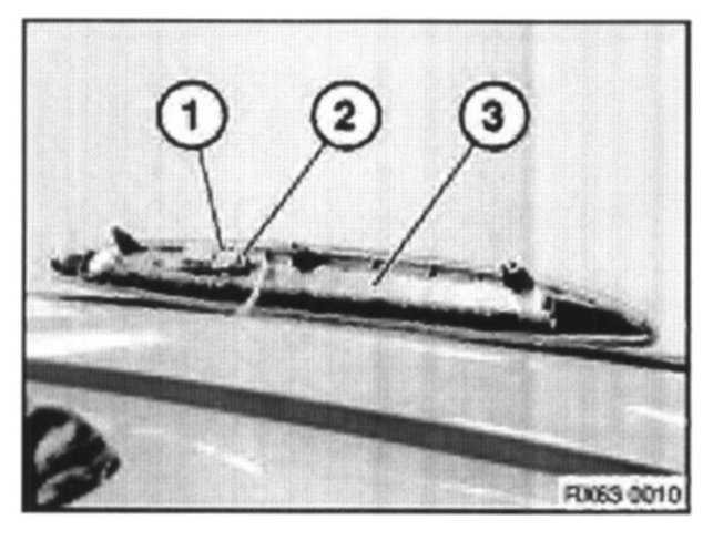 Release connector from light assembly clip (1), disconnect connector (2) and remove light assembly (3).
