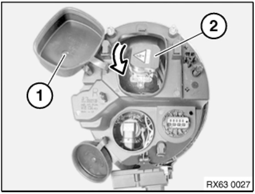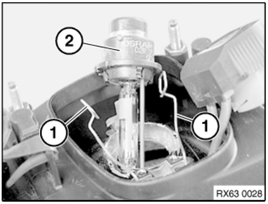 Release lock (1) and remove bulb for xenon headlight (2).