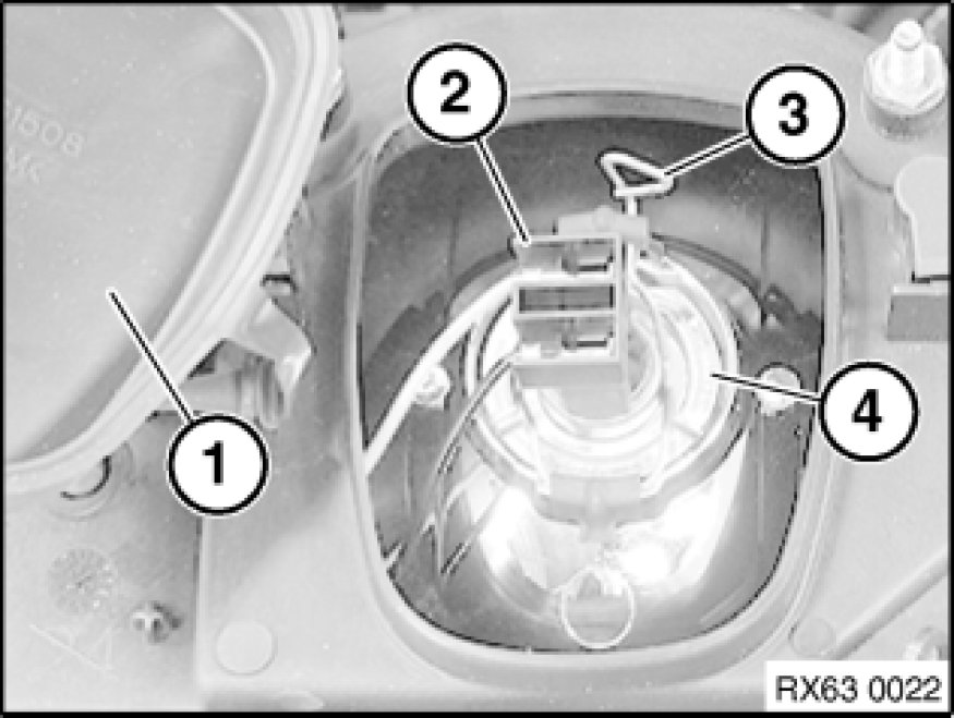 Disconnect plug connection (2) and remove halogen bulb for headlight (4).