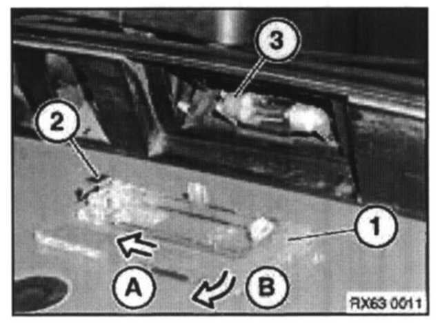 Lever out lens (1) in the direction (A), and then in direction (B) and remove.