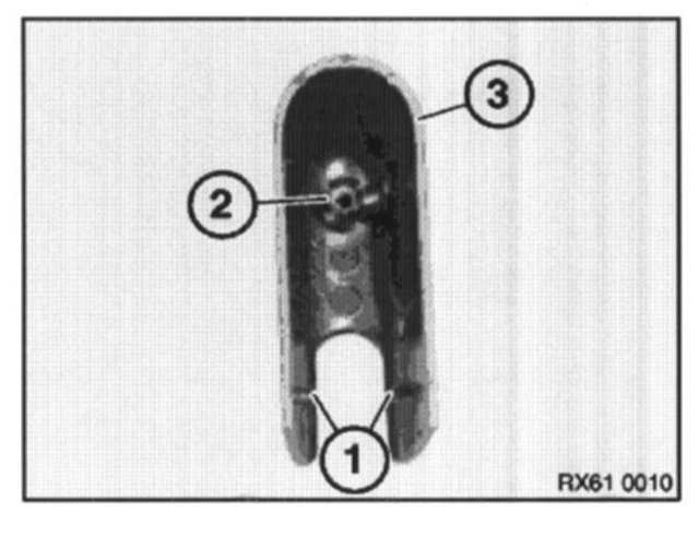 Catches (1) and washer jet supply hole (2) of protective cap (3) must not be damaged.
