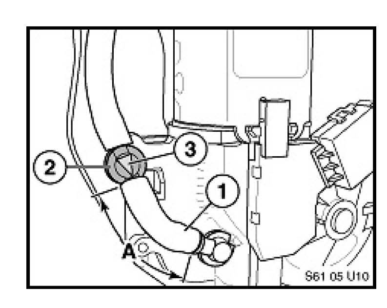 1. Cut the washer fluid supply hose (1) approximately 20mm from the end (Dimension A).