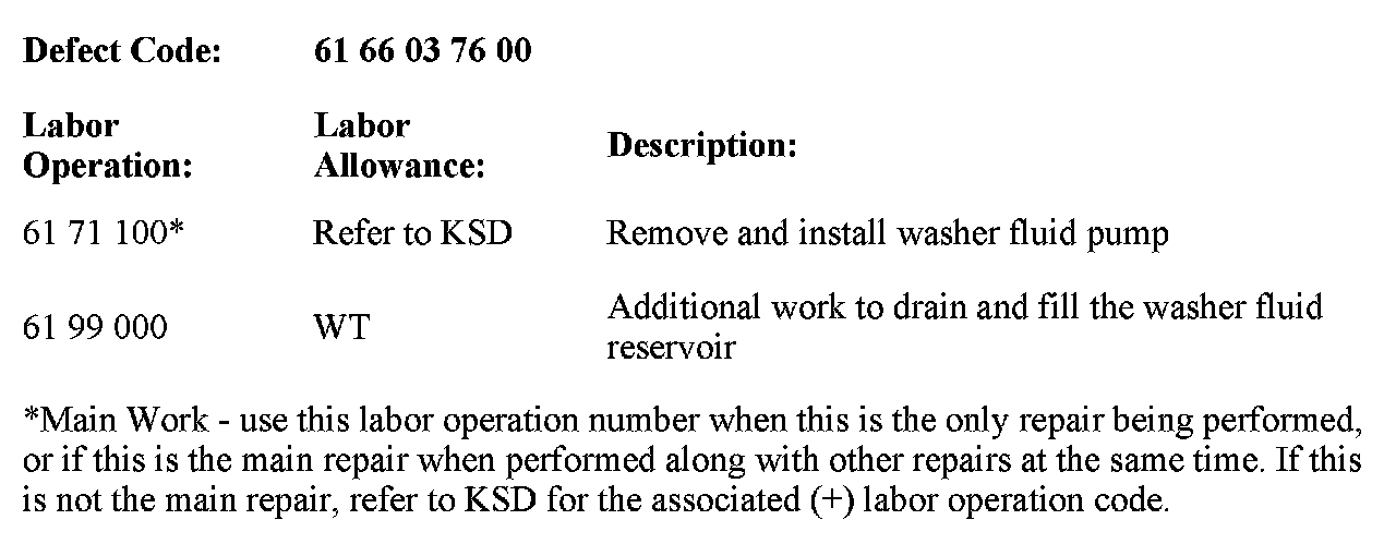 4. Do not replace the washer pump, provided that it is still functioning properly.