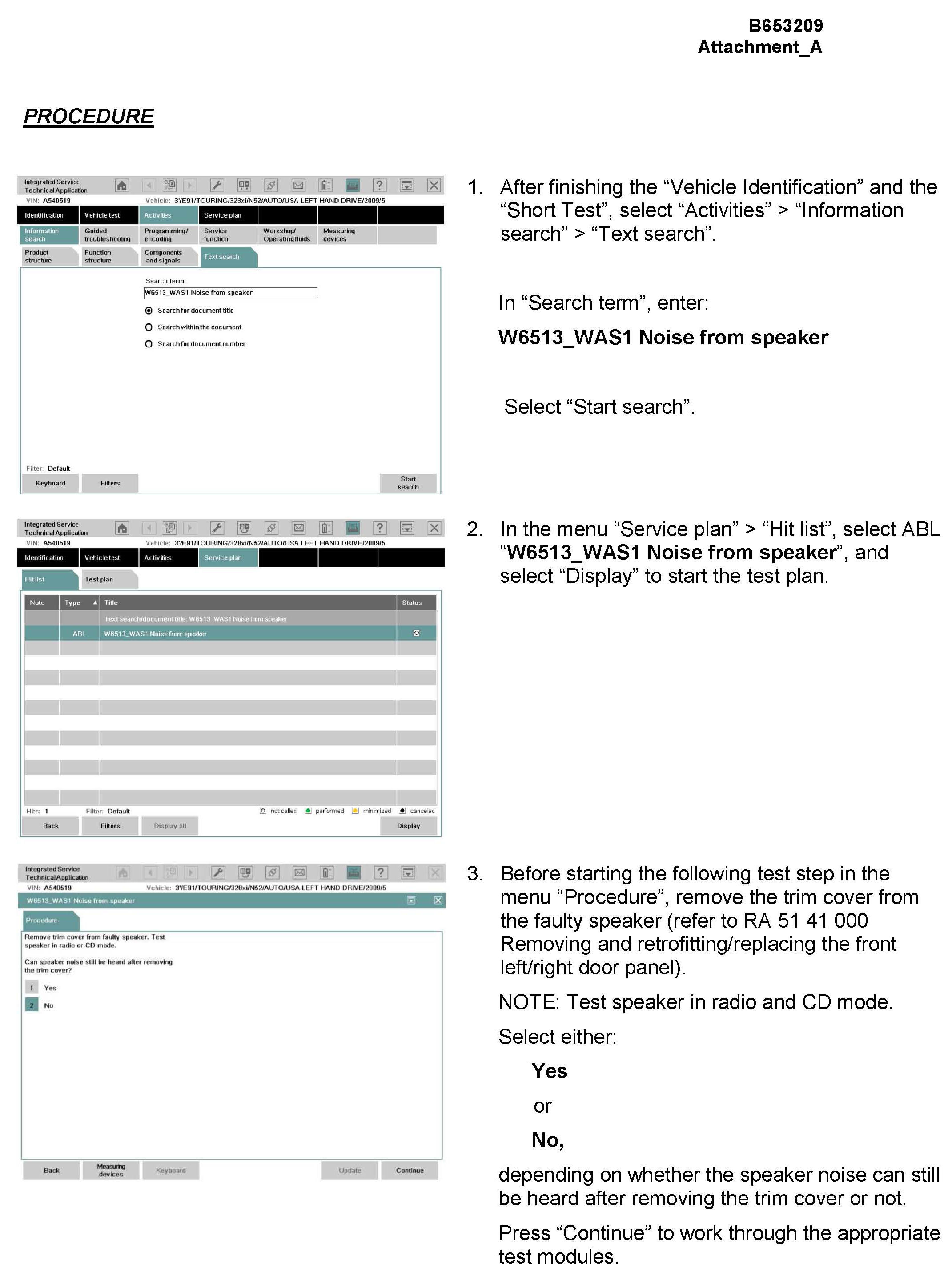 Cause 1: Test module W6513_WAS1 Noise from speaker (refer to Attachment A).