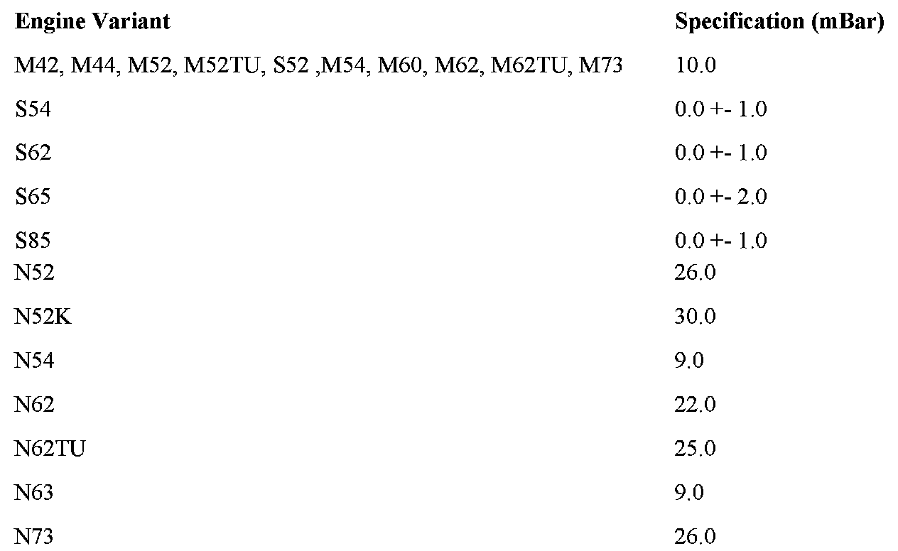 Specification and actual readings from the vehicle may vary by up to plusmn;10%, but not more than 2.0 mBar.