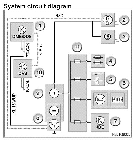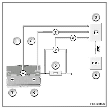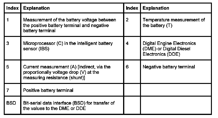 - Calculation of the current characteristics on engine start to ascertain the battery condition. While the vehicle is being driven, the IBS transfers the data across the bit-serial data interface (BSD) to the engine control module (DME/DDE). The software in the IBS controls the communication with the higher-level engine control module (DME/DDE).
