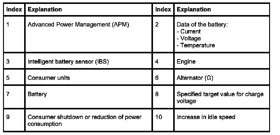 The main factor for the greater range of functions of the Advanced Power Management is the intelligent battery sensor (IBS). The IBS provides the power management with information on the battery status. Calculation of the temperature of the battery using the outside temperature is no longer necessary. The temperature of the battery is measured directly by the IBS.