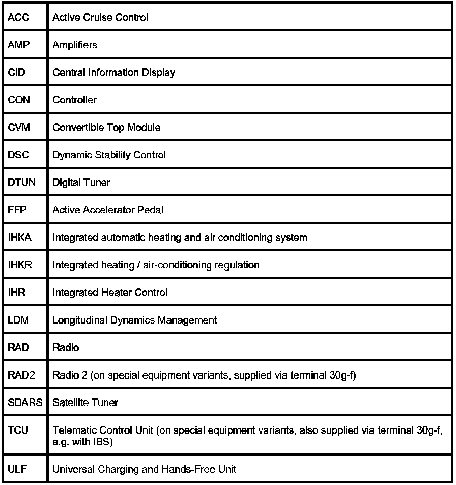 In all cases of cutoff, a fault is entered in the JBE. The cutoff of terminal 30 g-f is independent of what triggered the detected fault. The cutoff is only an attempt to remedy the fault in the vehicle and prevent it from not starting. The cutoff of terminal 30 g-f does not necessarily mean that there was a fault in a consumer unit of terminal 30 g-f.