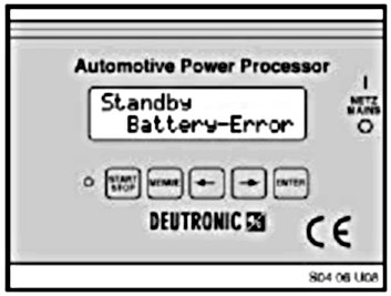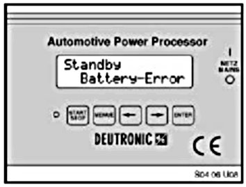 3. Switch the charger on using the main power switch on the front. The message "Battery Error" is displayed.