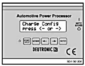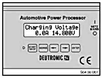 To improve the quality of battery charging on BMW vehicles, the charging voltage on approved BMW chargers has been increased to 14.8 volts. This means that the Deutronic DBL430 battery charger must have its charging voltage changed to 14.8 volts. If the menu choice "Factory Settings" is selected at any time, the factory default of 14.4 volts is set. In this case, the procedure that follows must be performed again.