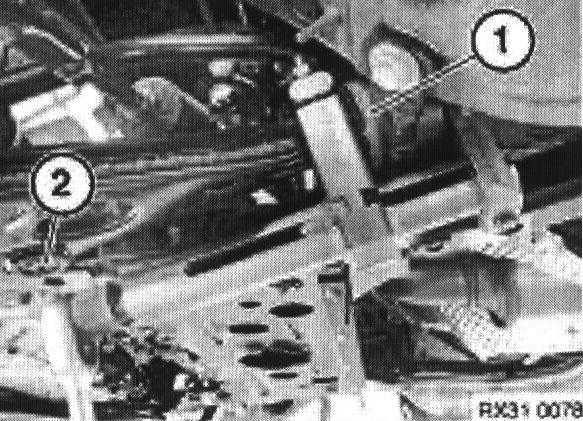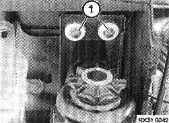 Remove bolts (1) retaining left and right compliance bush housings (2) to body.