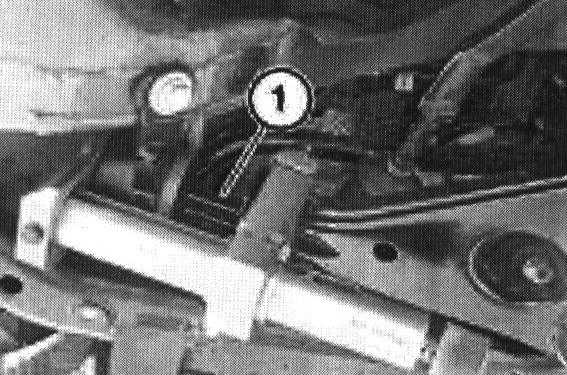 Pull down arm to clear inner ball joint. Continue pulling arm into bush until arm contacts end of bush (1).