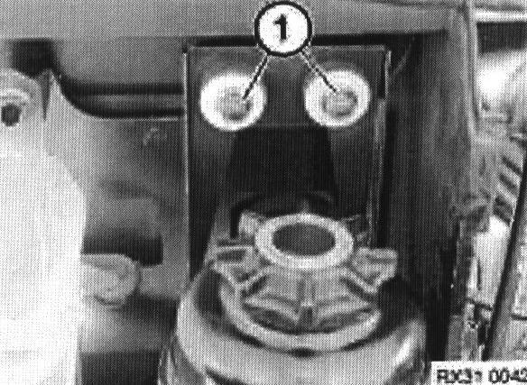 Remove bolts (1) retaining left and right compliance bush housings (2) to body.