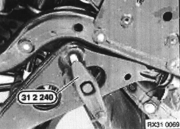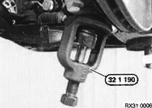 Disconnect both lower arm to knuckle ball joints using special tool 32 1 190.