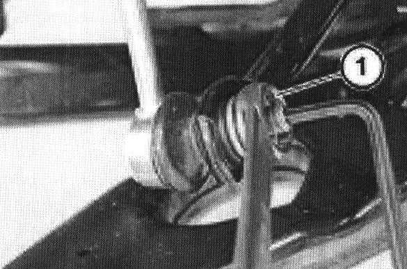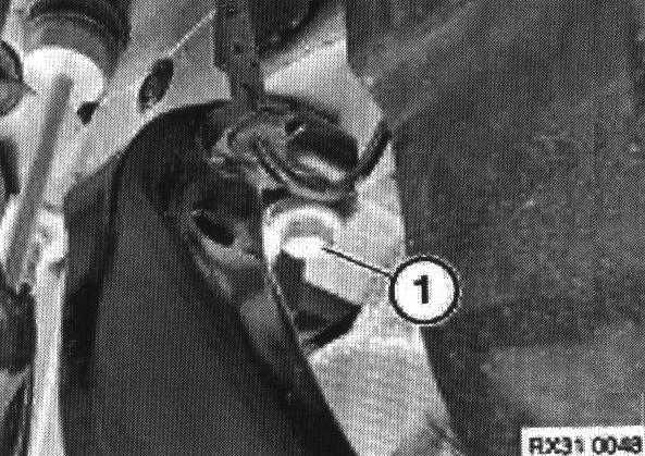 Lower subframe just enough to allow removal of bolts (1) retaining compliance bush housing to subframe.