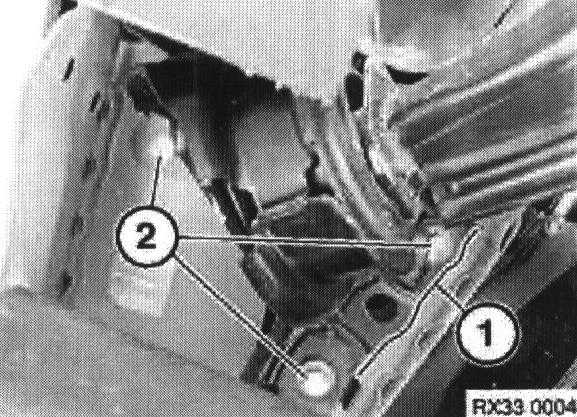 Mark position of compliance bush to body (1) to aid subsequent toe-in adjustment.