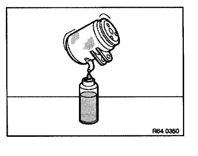 After installing the new compressor, it is essential before filling the A/C system to pour the same amount of the previously drawn off refrigerant oil into the system again, refer to Evacuating A/C system.