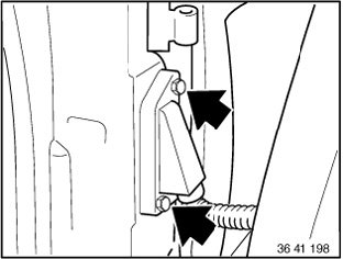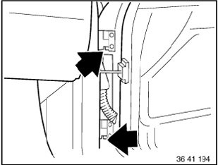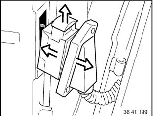 Pull plug connection from door pillar, unlock by pulling out bar and detach.