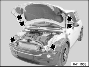 When engine bonnet/hood is being closed, bracket on engine bonnet/hood must not touch or brush against lock. Look out for scratches.