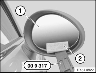 Unclip mirror glass (1) all round with special tool 00 9 317.