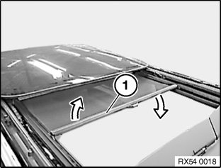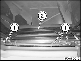 Open slide/tilt sunroof panel until all screws (1) of glass panel (2) are accessible.