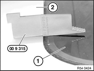 Check height of glass panel (1) in relation to body (2) with special tool 00 9 315.