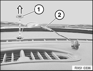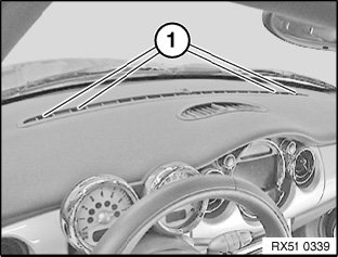 Firmly pull solar sensor (1) upwards to release binding (adhesive tape inside instrument panel).