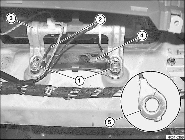 - Broken eyelets (5) or damaged restraint cables (2) can cause injuries due to uncontrolled tearing off of the airbag cover when the airbag is triggered.