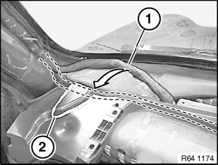 Lay wiring harness (1) between instrument panel and bulkhead.