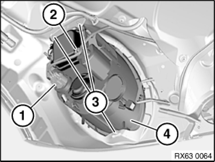 Release nuts (3) and remove headlight (4).